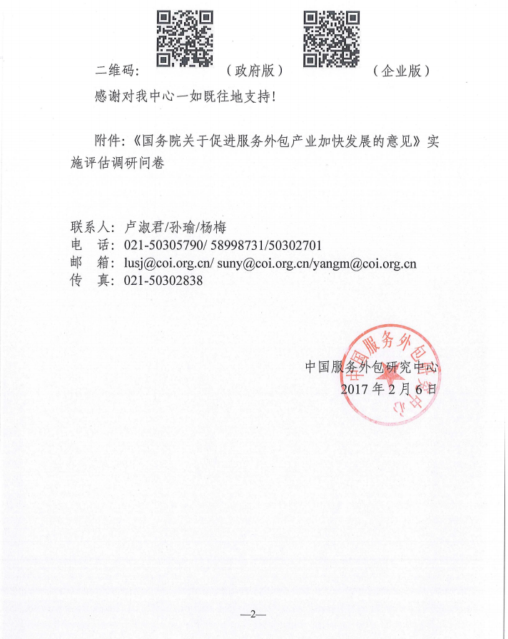 關(guān)于開展服務(wù)外包相關(guān)政策評估調(diào)研的函